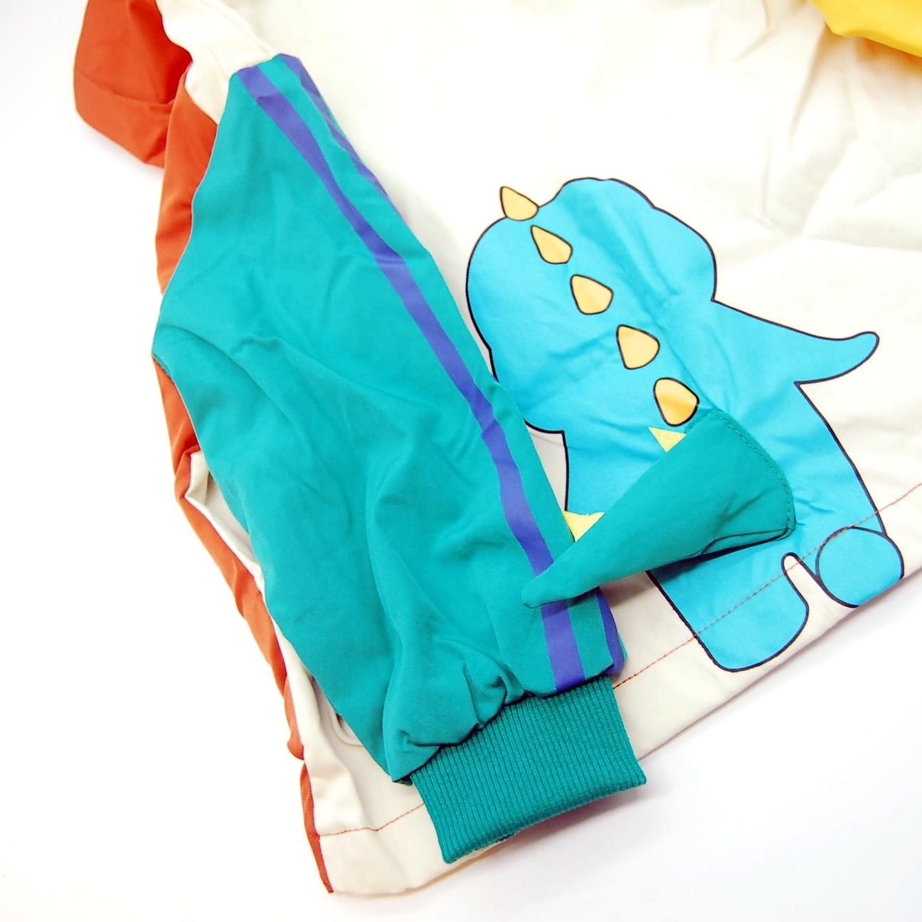 かわいい恐竜デザインの子ども用パーカー・ウィンドブレーカーです。