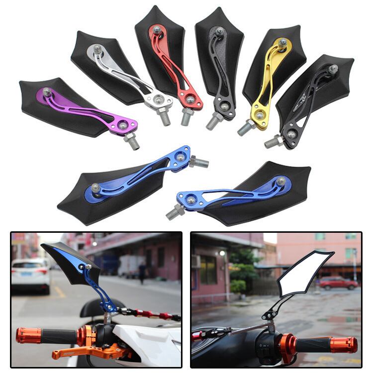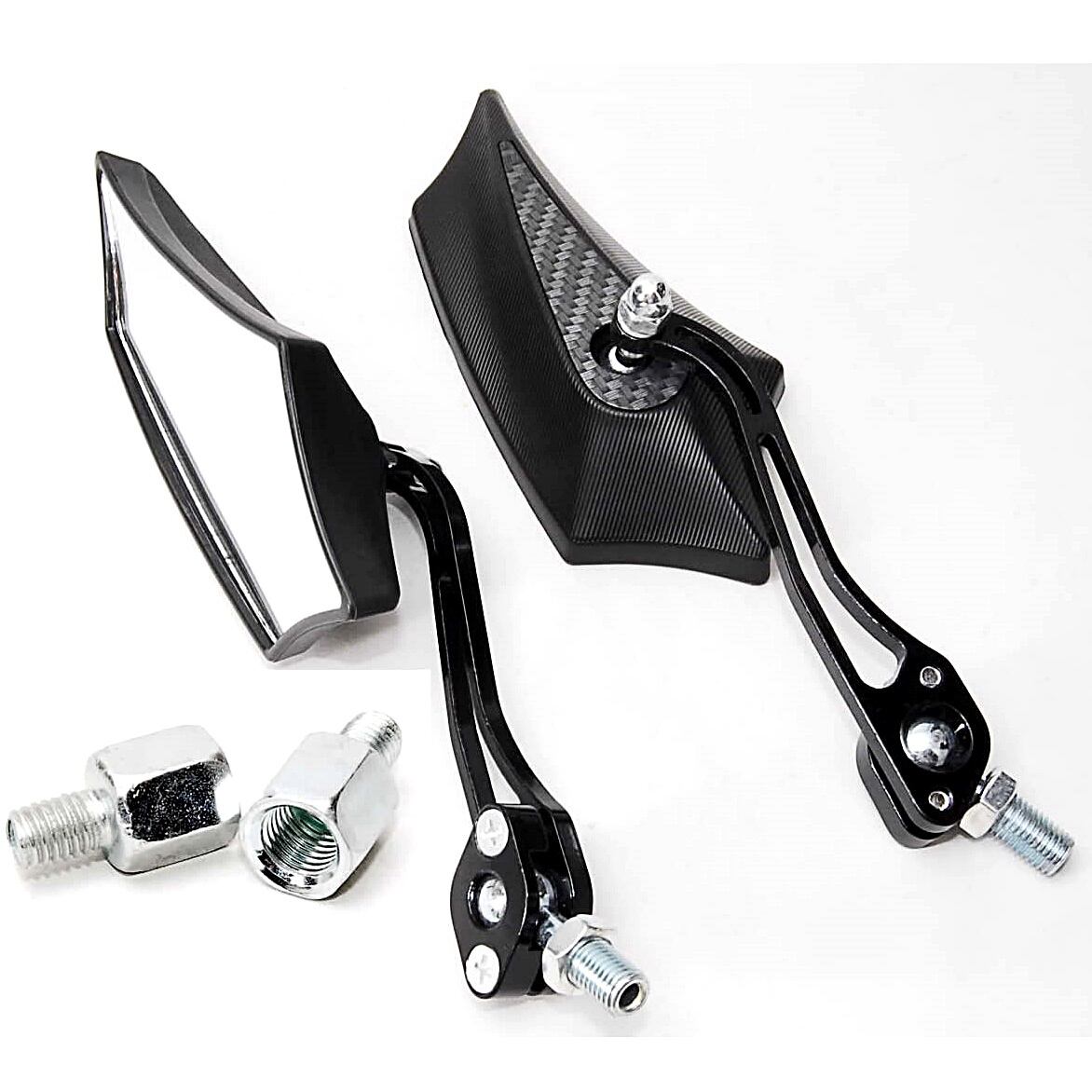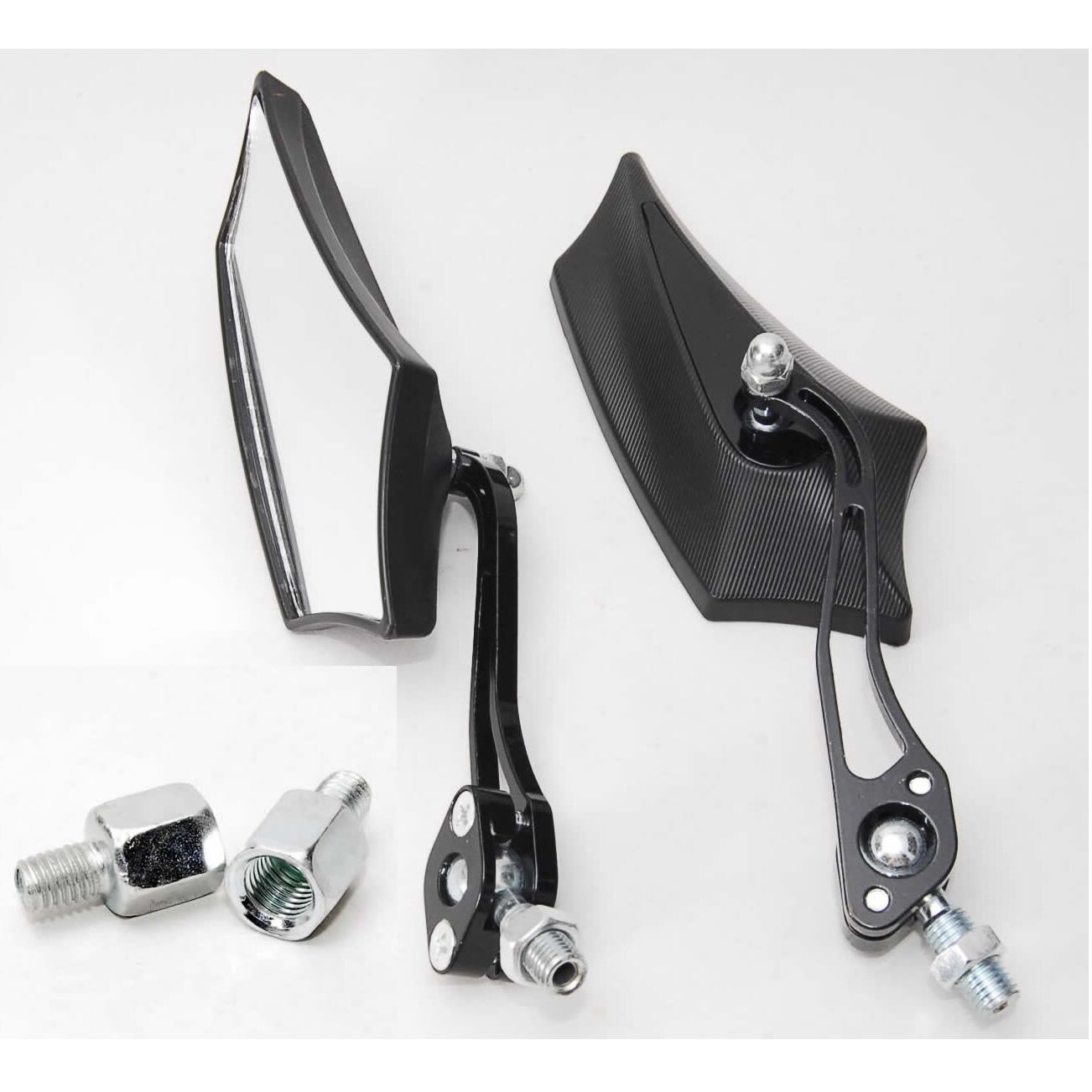 【送料無料】 ニュースタイル バイク用 サイドミラー 変換アダプター付 カスタム 汎用 バックミラー 五角形 オートバイ 原付 スクーター ヘキサゴン