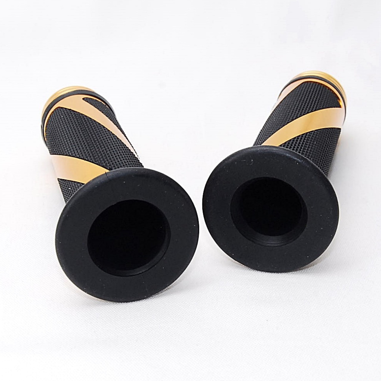 送料無料 バイク カスタム トルネード ハンドルグリップ ゴールド アルミ 左右セット 原付 オートバイ ビッグスクーター 汎用 グリップ 金