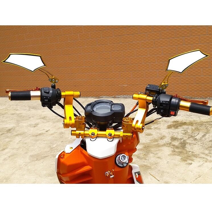 送料無料 五角形 ウイングミラー サイドミラー ゴールド 変換アダプター付 バックミラー バイク ミラー オートバイ 原付 汎用 カスタム 金