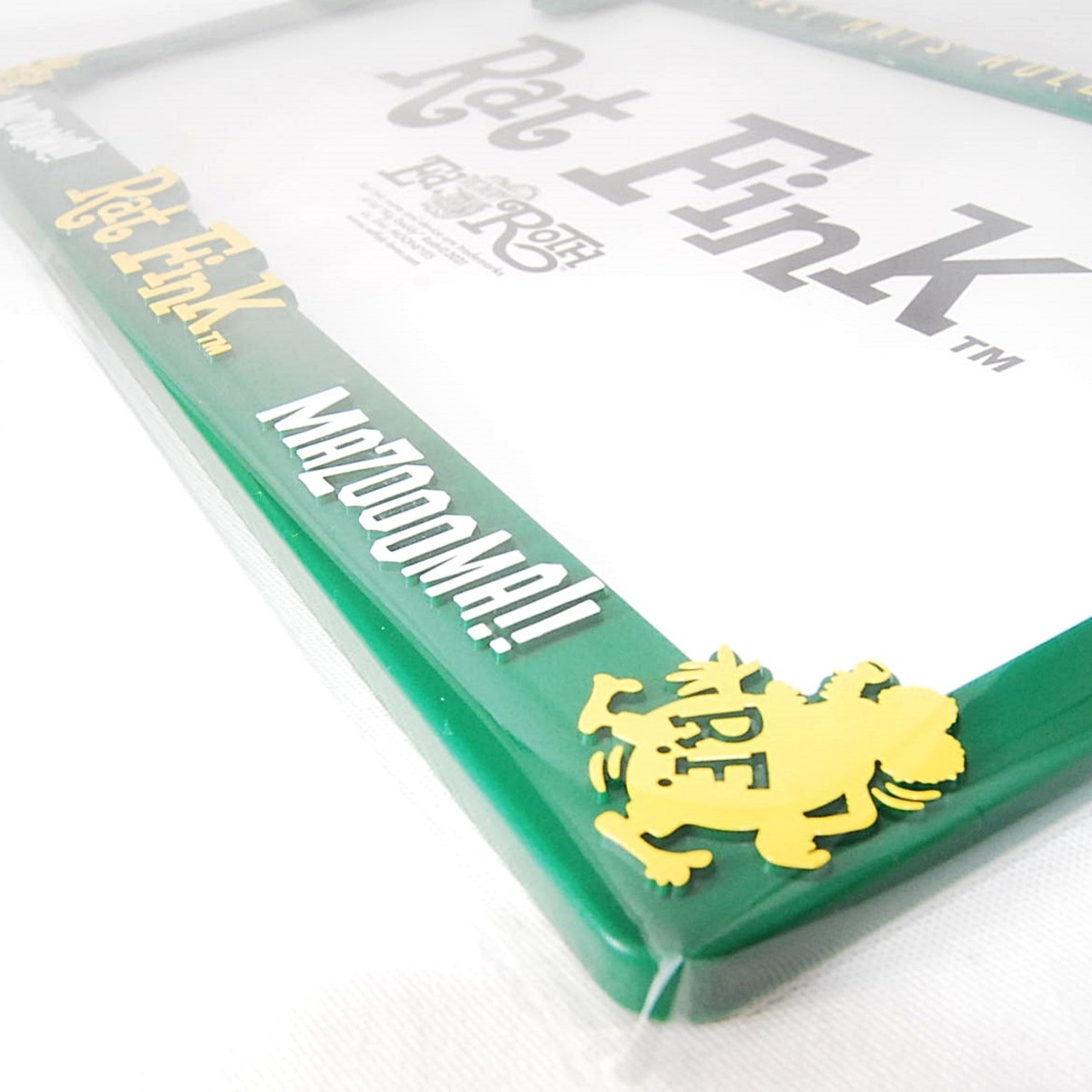 MRat Fink グリーンが一際目立つ、令和3年10月からの新基準に対応した Rat Fink ロゴのライセンスプレートフレームです。