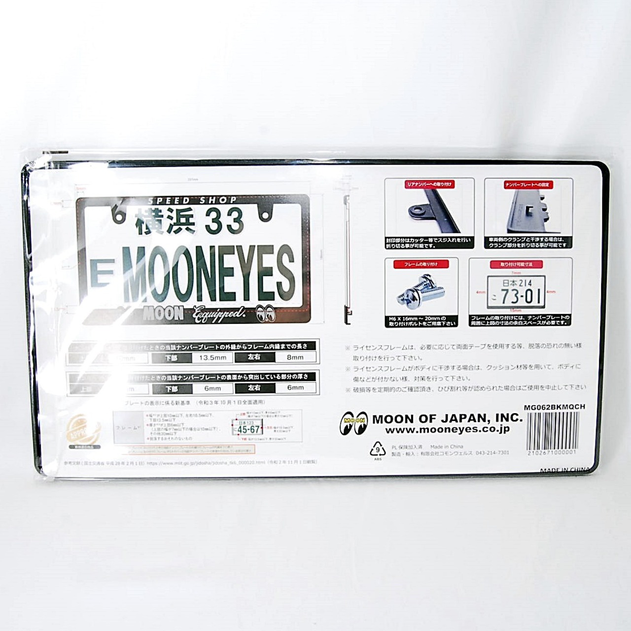送料無料 Raised MOON Equipped ロゴ ライセンスフレーム クローム 2枚セット MG062BKMQCH ムーンアイズ ナンバーフレーム プレート