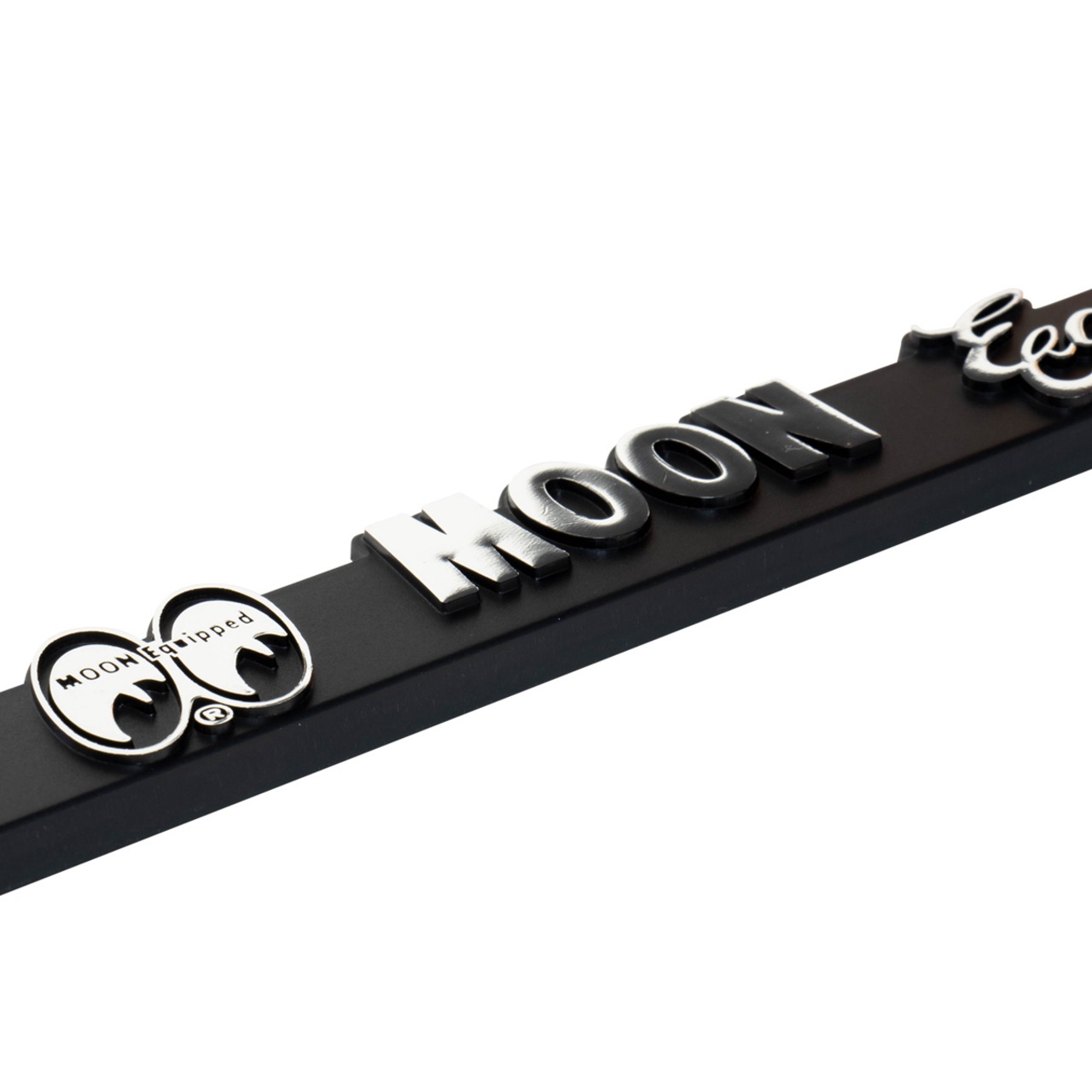 MOON Equipped ブランドらしい ブラックのライセンスフレームが、雰囲気をグッと引き締めて、スタイリッシュに愛車のフロントフェイスを決めてくれます。