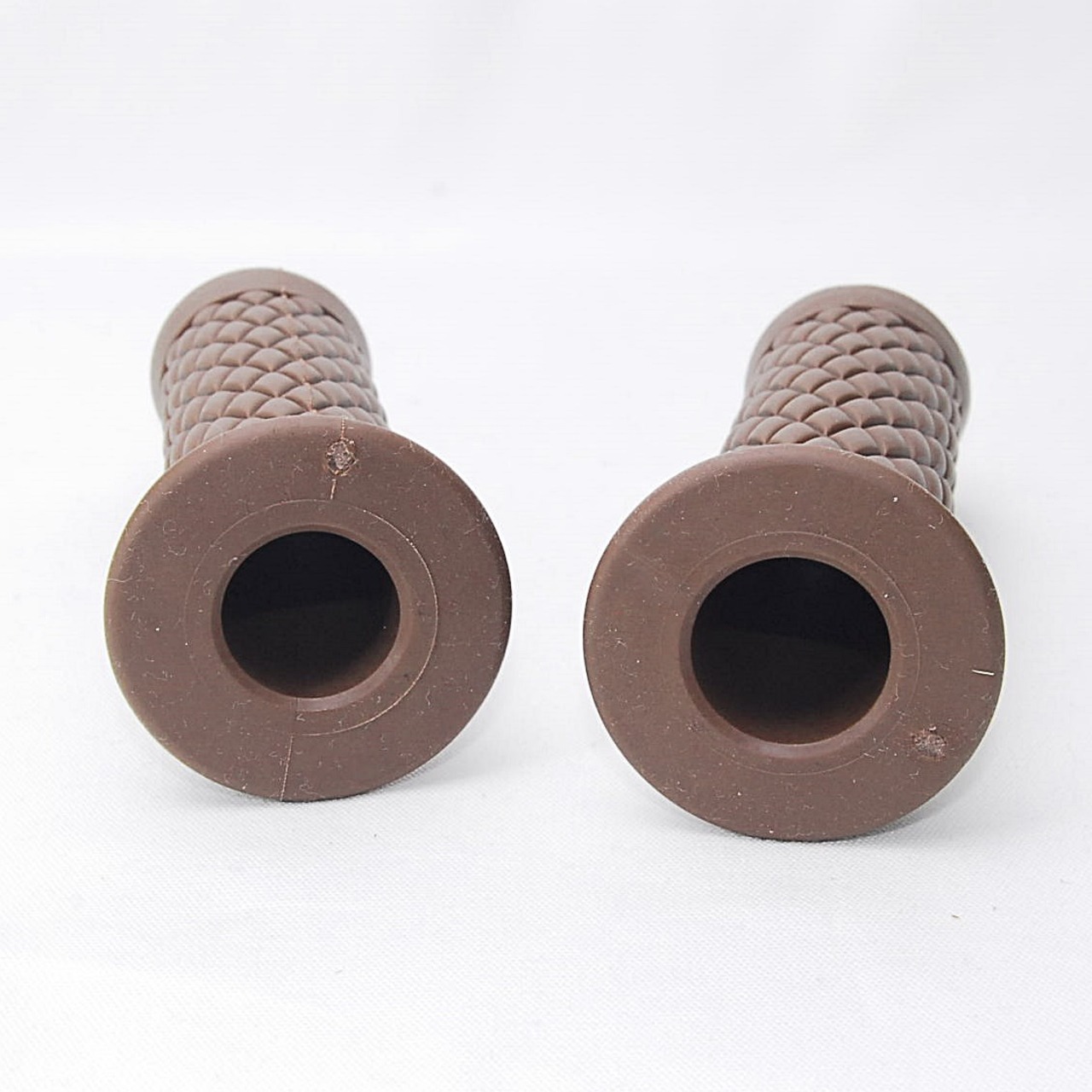 送料無料 ダイヤ柄 ラバーハンドルグリップ ヴィンテージブラウン 非貫通式 22.2径用 汎用 バイク ラバーグリップ カスタム ハンドル グリップ 茶